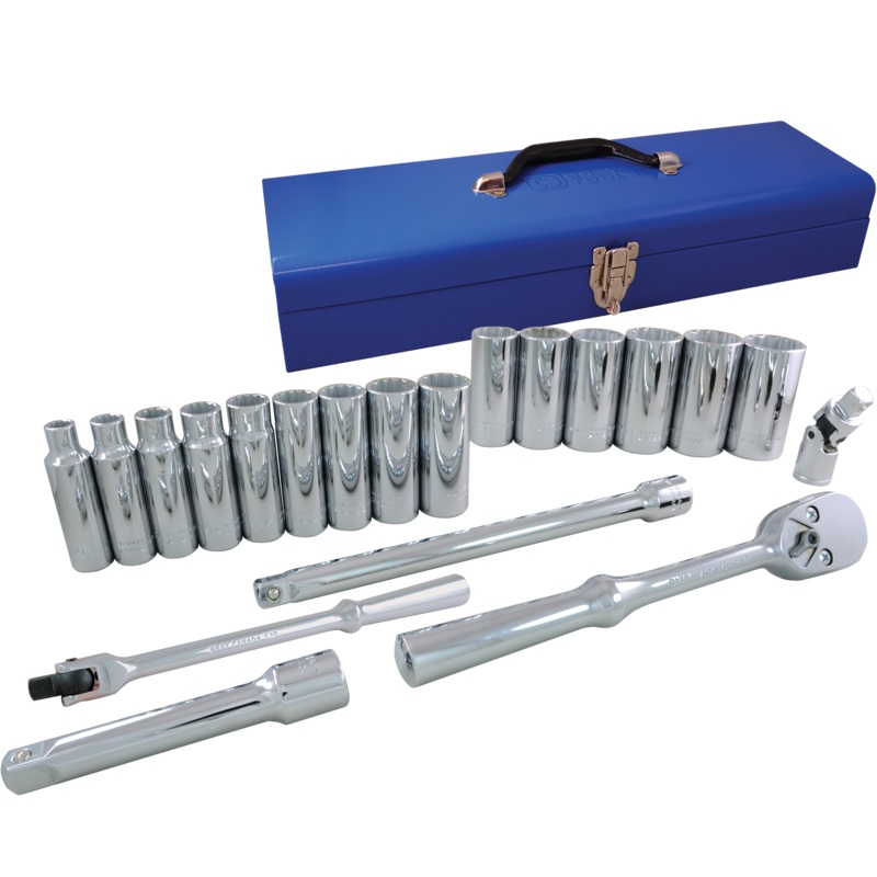 - 3/8″, 7/16″, 1/2″, 9/16″, 5/8″, 11/16″, 3/4″, 13/16″, 7/8″, 15/16″, 1, 1 1/16″, 1 1/8″, 1 3/16″, 1 1/4″ sockets