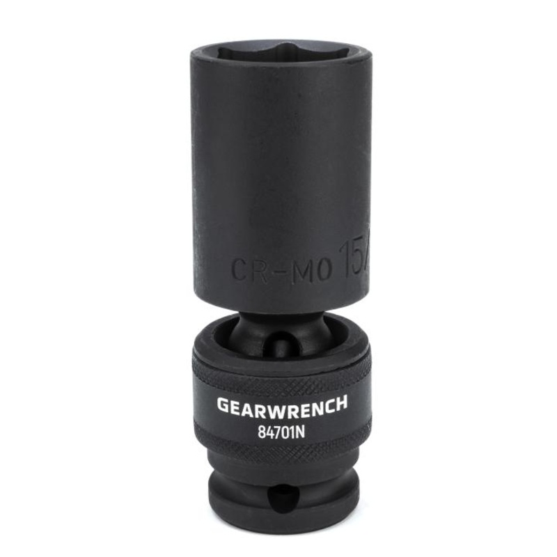 Dim. A: Drive End : 1.181Dim. B: Wrench End : 1.339Dim. E: Wrench Depth : 0.984ASME Specification : B107.33MDim. F: Length to Shoulder : 1.811Overall Length : 3.543Size : 15/16 inProduct Type : SocketPackaging : Hang TabWeight (Catalog) : 0.77Socket Size (SAE) : 15/16 inDrive Tang Size : 1/2 inLength Format : DeepFinish : Black OxideMagnetic : NoSAE/Metric/Torx : SAEUPC : 099575867019Locking : NoMaterial : Chrome Molybdenum Alloy (Cr-Mo)