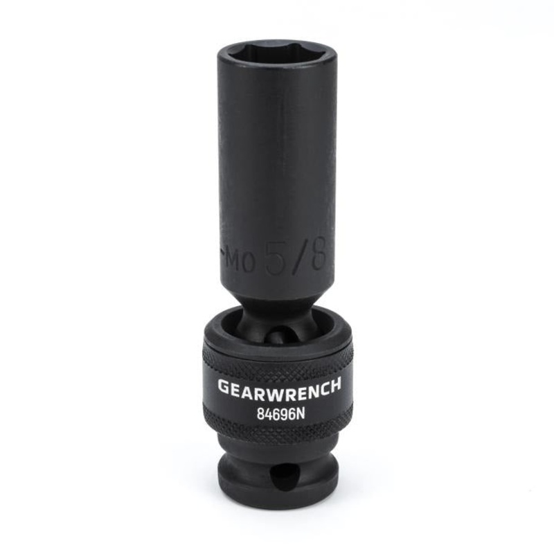 Dim. A: Drive End : 0.984Dim. B: Wrench End : 0.906Dim. E: Wrench Depth : 0.787ASME Specification : B107.33MDim. F: Length to Shoulder : 1.811Overall Length : 3.543Size : 5/8 inProduct Type : SocketPackaging : Hang TabWeight (Catalog) : 0.46Socket Size (SAE) : 5/8 inDrive Tang Size : 1/2 inLength Format : DeepFinish : Black OxideMagnetic : NoSAE/Metric/Torx : SAEUPC : 099575866968Locking : NoMaterial : Chrome Molybdenum Alloy (Cr-Mo)