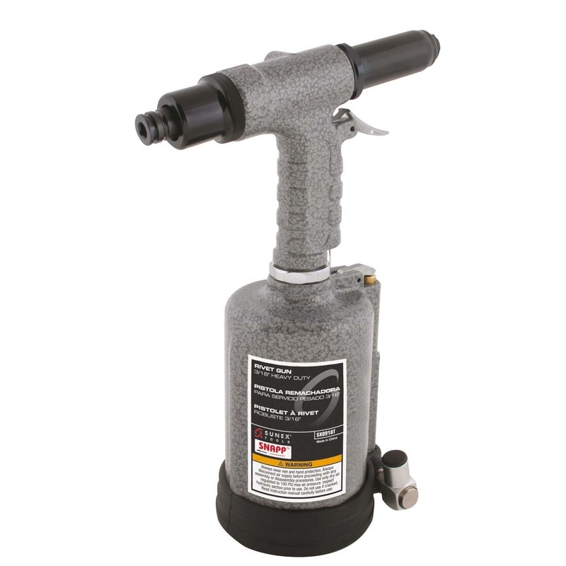 Sets all conventional, standard, structural blind rivets, and monobolts that are 3/16 or 1/4 in diameter in all materialsComes with nose pieces in 3/16"Forged aluminum handle.Warranty1 Year SUNE Xpress WarrantyDrive Size1/4Min Hose Size3/8Stroke Length (in
