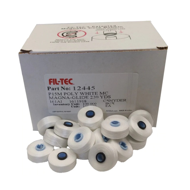 Experience smooth and consistent tension with the Fil-Tech Magna Glide Style M Prewound Bobbins. Each bobbin contains 230 yards of 60wt filament polyester and can provide uninterrupted usage, eliminating the need to rewind bobbins. Achieve a professional finish with these reliable prewound bobbins.
