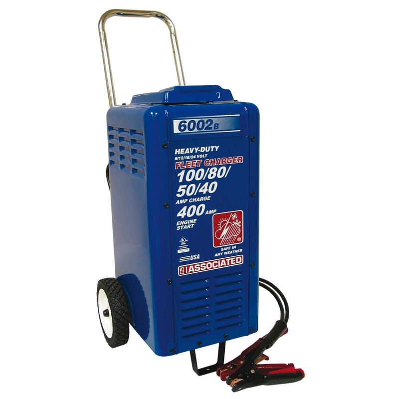 6/12/18/24 Volt Heavy Duty Fleet Charger 100/80/50/40 Amps Charger 400 Amp Crank Assist at 12V Protective gauge cover Patented Stop/Go light for Polarity Indication Rugged 7 tires