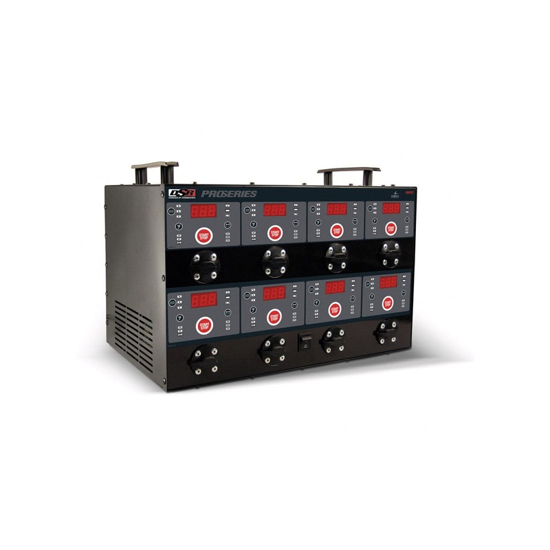 - Eight independent fully automatic and microprocessor-controlled charging banks