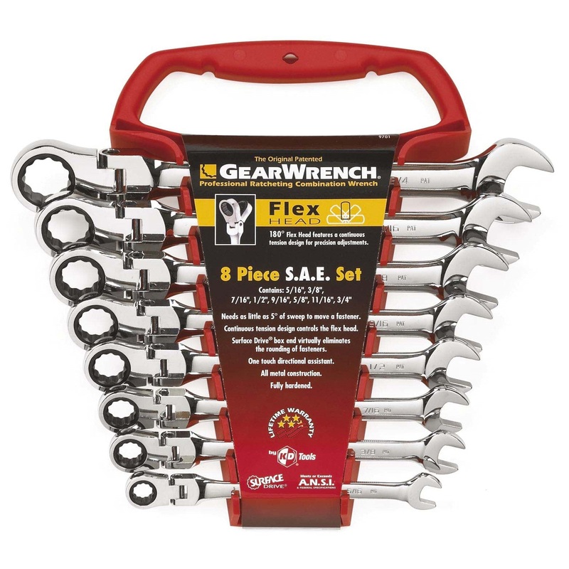 8 Pc. 12 Point Flex Head Ratcheting Combination SAE Wrench Set