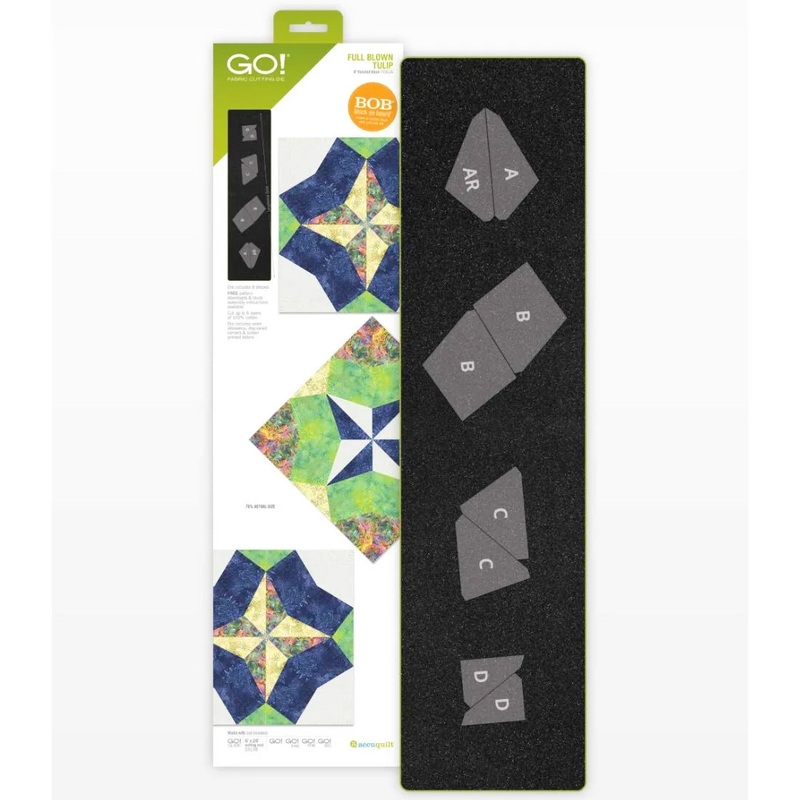 Some shapes can be challenging to cut accurately by hand, but the Accuquilt GO! Dies provide precise cuts every time. The Accuquilt GO! Full Blown Tulip Die (8″ Finished) is a Block on Board (BOB) die specifically designed to cut a 5-color, 8″ block in just one pass through the cutter. It features 8 unique shapes, specialized dog ears, 1/4″ seam allowances, and notches on curves to ensure easy alignment. This die also features screen-printed letters on the die foam for easier piecing and shape organization. The Accuquilt GO! Full Blown Tulip Die (8″ Finished) is perfect for using fabric scraps that would otherwise go to waste and is fat-quarter-friendly.The Accuquilt GO! Cutting Mat 6″ x 24″ is required.
