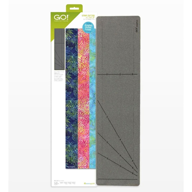 Strips of fabric can be challenging to cut accurately by hand. The Accuquilt GO! Dies ensure exact cuts every time! Accuquilt GO! Strip Cutter 1″, 1-1/2″, 2″ (1/2″, 1″, 1-1/2″ Finished) Die features angled guidelines and precisely cuts 3 multi-sized strips at once! It is perfect for scrappy quilts, sashing, narrow borders, and delicate bindings, and the angled guidelines are helpful for cutting squares and diamonds from your strips. The Accuquilt GO! Strip Cutter 1″, 1-1/2″, 2″ (1/2″, 1″, 1-1/2″ Finished) Die is open at both ends, allowing you to cut folded fabric right from the bolt. The Accuquilt GO! Cutting Mat 6″ x 24″ is required.