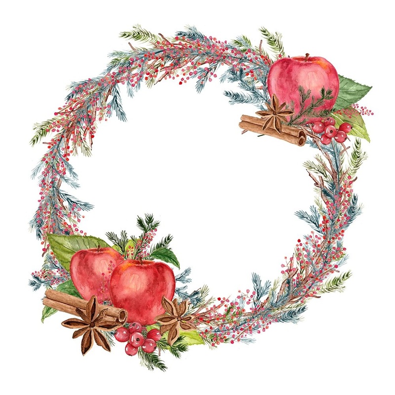 Apple Cinnamon Wreath #3 Fabric Panel Quilting Cotton 4.5 Inches by 4.5 Inches