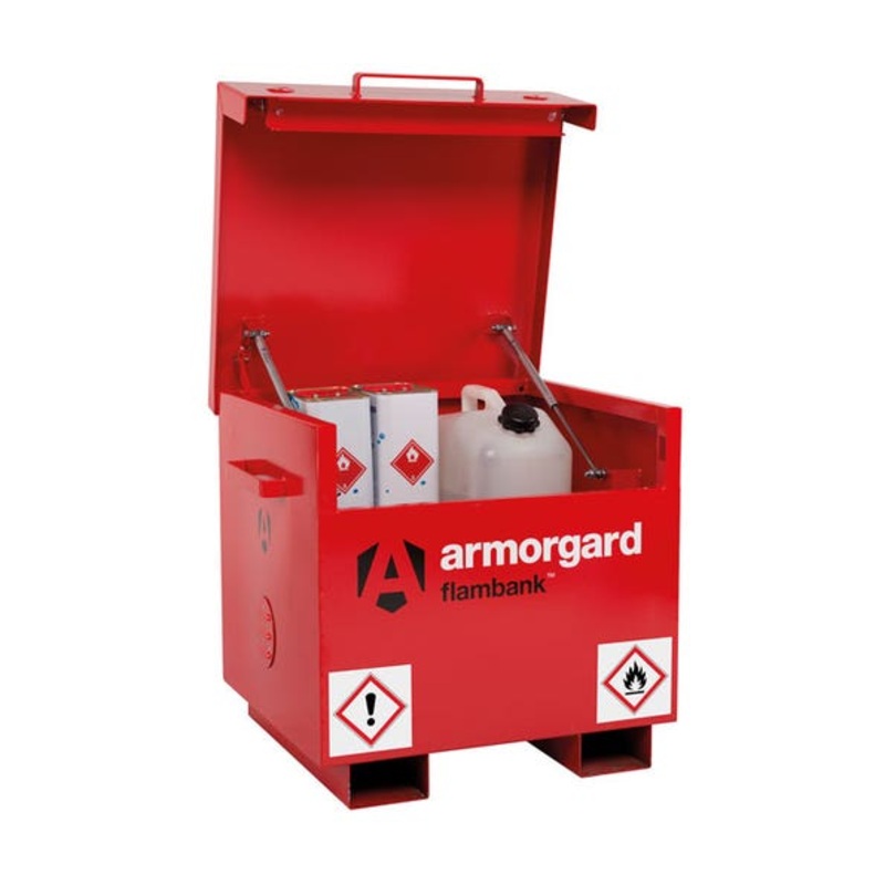 Finished in bright red with relevant hazard warning signs fitted as standard