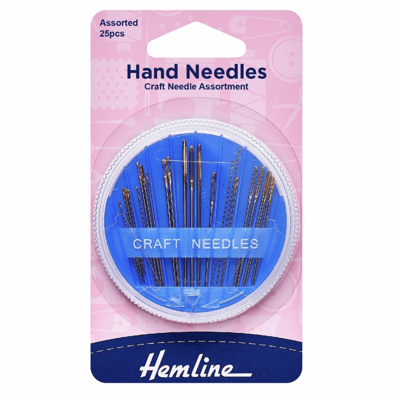 Needle compact containing 25 assorted needles for cross stitch, tapestry, beading, quilting, and other sewing crafts.