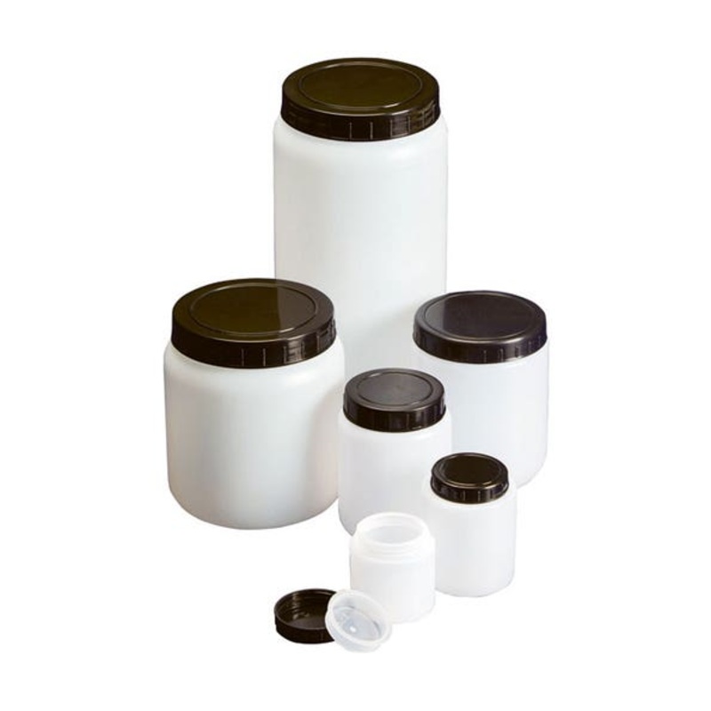A round jar with screw cap and sealing plug. Made from HDPE. The pack quantity is 1.