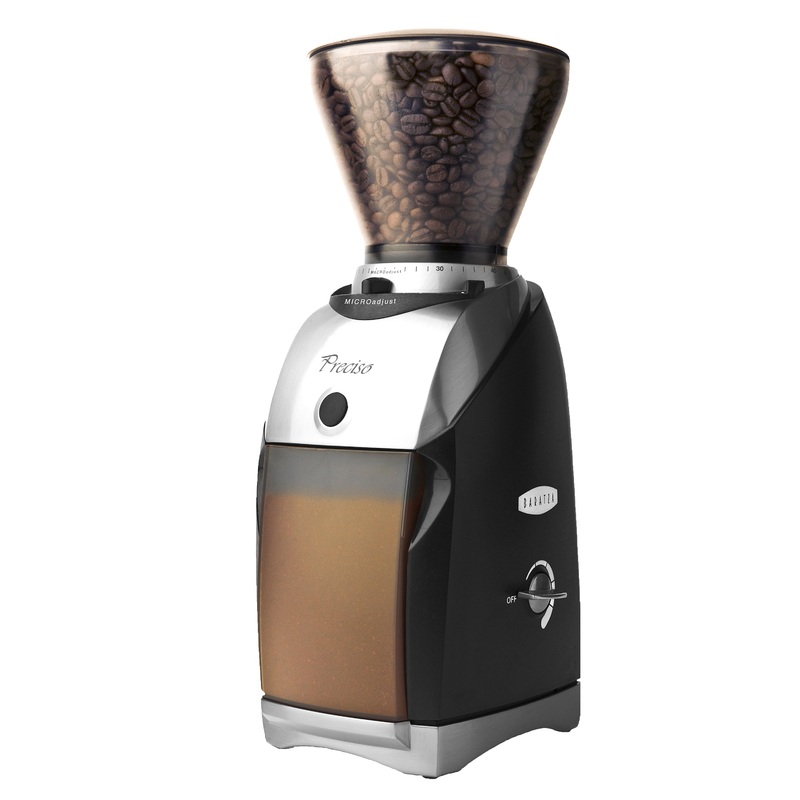 The Baratza Preciso is built to perform like a commercial grinder. It features 40mm conical burrs, hardened for a lifetime of reliability. Youll have the option of activating the grinder using a push-button control or a timer; the versatile Preciso can grind a single shot or large batches with ease. This unit features a 5oz ground coffee container with anti-static device as well as a PortaHolder that allows for hands-free operation. Despite its sophisticated capabilities, the Virtuoso is exceedingly user friendly, making it ideal for the home.