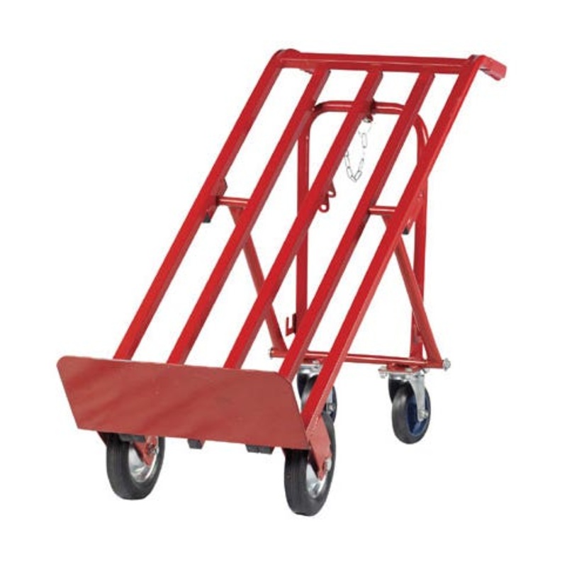 Converts easily from a basic sack truck into either a 4 wheeled sack truck or platform trolley. Fitted with double rear castors (100mm dia) for extra stability when transporting heavier loads. Powder coated in red.