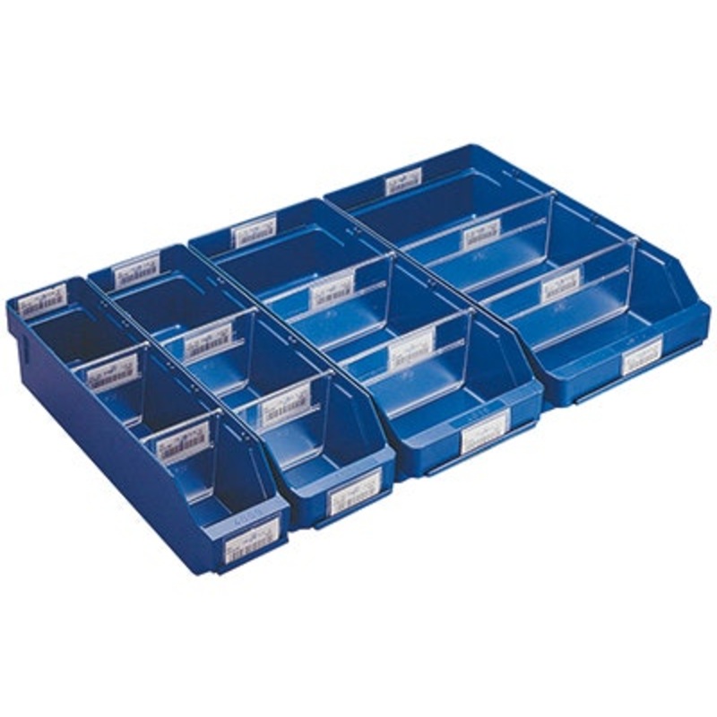 Bin design includes a semi-open front, a facility for transparent dividers and a bin stop