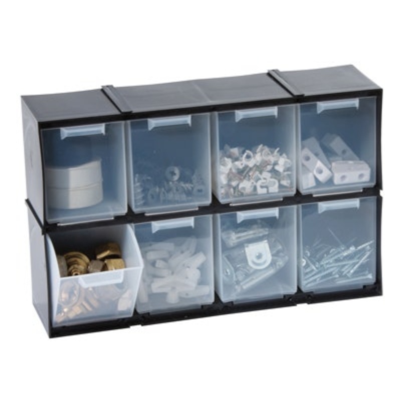 8 Drawer Cabinet Brand:Barton Storage Manufacturer Part Number:G0108/4 Features & Benefits: These lightweight transparent drawers are ideal for storing small parts such as screws, bolts, nails Tilt drawers for easy access to contents The cabinets are modul