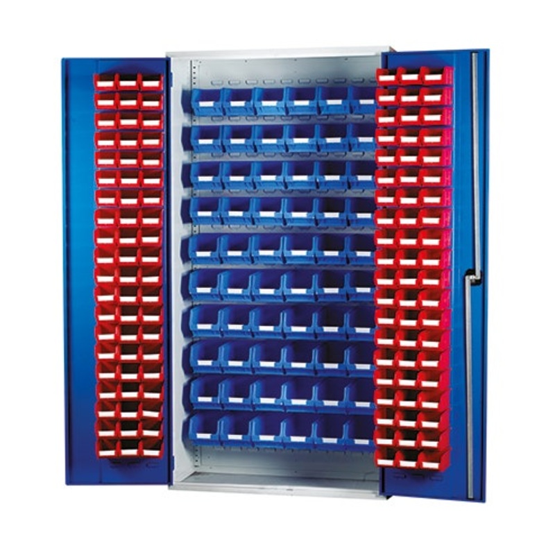 Louvre Panel Cabinet with 180 Bins Brand:Barton Storage Manufacturer Part Number:13074 Features & Benefits:Features: Supplied fully assembled Made of robust all-steel construction offering flexible storage for the office, workshop or stockroom Epoxy powder