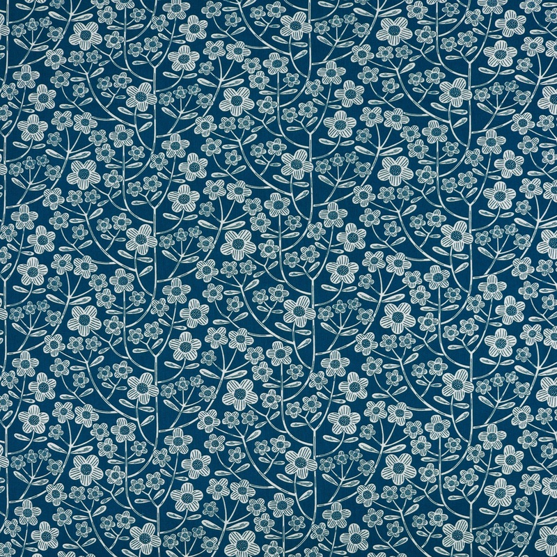 With its deep denim-toned background and intricate white floral outlines, Brynn Blue from the Blooming Color 2 Fabric Collection by Wolff Paper for Benartex Fabrics brings timeless elegance to your sewing table. The delicate, linear blooms stand out beauti