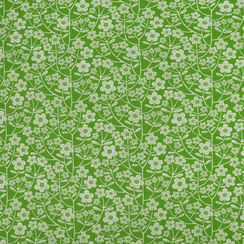 Fresh as a field of clover, Brynn Green features a lively display of hand-drawn white florals layered over a bright grassy green background. Designed by Wolff Paper for Benartex Fabrics, this charming print captures the feel of wildflowers in bloom with de