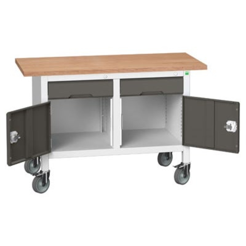 Bott 1250 x 600mm Mobile Grey Bench with 2 Cupboards