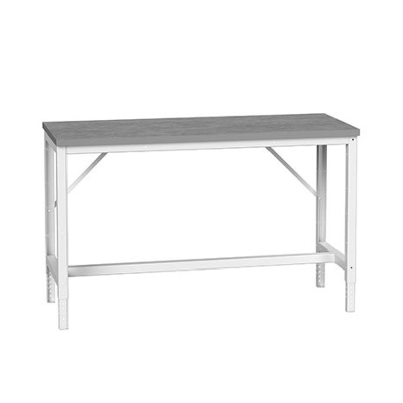 verso height adjustable framework bench 1500mm x 600mm x 780 – 930mm with 30mm Lino worktop. Constructed of sheet steel with a hardwearing light grey (RAL 7035) powder coated finish.
