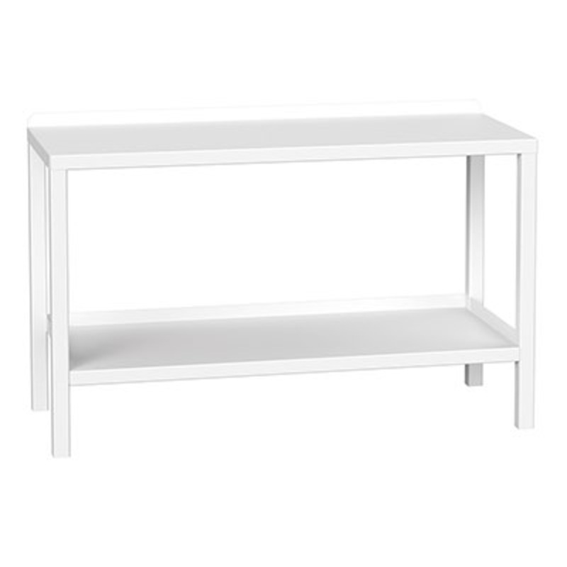 verso welded bench 1500mm x 600mm x 910mm with steel worktop. With 750 kg U.D.L. load capacity and constructed of sheet steel with a hardwearing light grey (RAL 7035) powder coated finish.