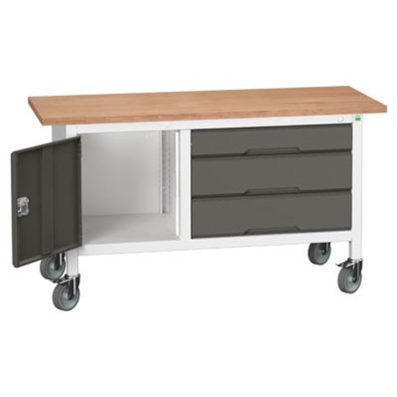 Verso mobile storage bench 1500mm x 600mm x 830mm with mpx worktop Brand:Bott Manufacturer Part Number:16923214 Colour:Light Grey / Anthracite Grey Height (mm):830 Depth (mm):600 Width (mm):1500