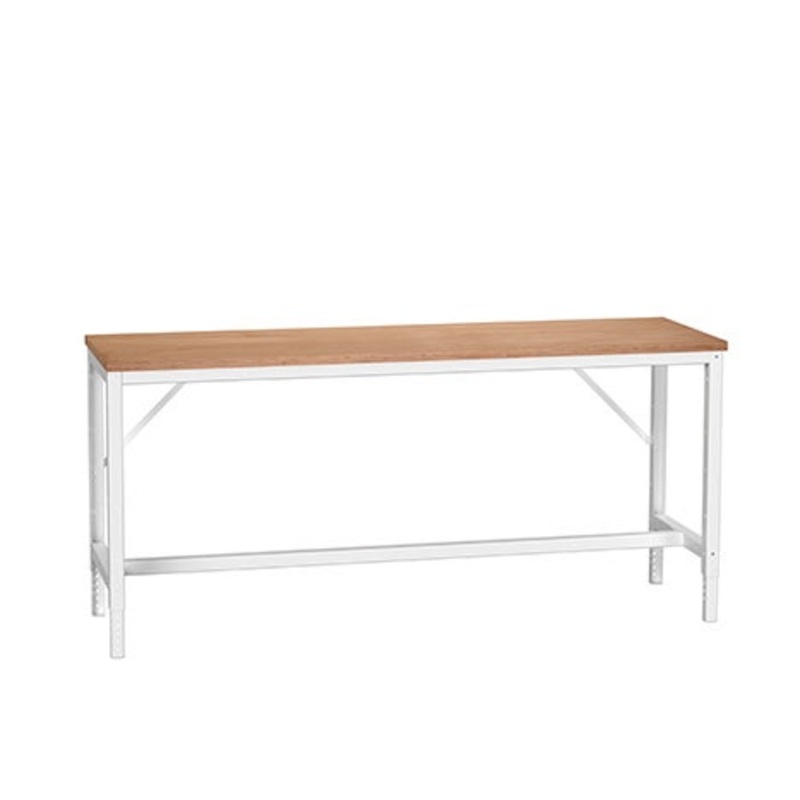 verso height adjustable framework bench 2000mm x 600mm x 780 – 930mm with 30mm Mpx worktop. Constructed of sheet steel with a hardwearing light grey (RAL 7035) powder coated finish.