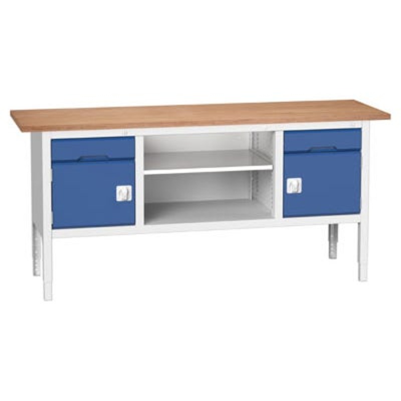Verso height adjustable storage bench 2000mm x 600mm x 830 - 930mm with mpx worktop Brand:Bott Manufacturer Part Number:16923031 Colour:Light Grey / Blue Height (mm):930 Depth (mm):600 Width (mm):2000