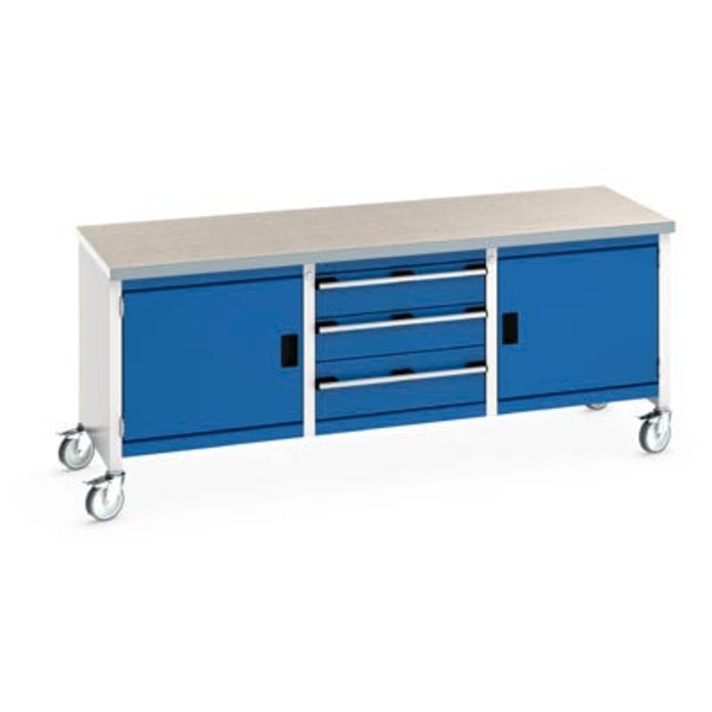 Bott 2000 x 750 x 840mm Cubio Bench Lino Top with 3 Drawers and 2 Cupboards – Blue