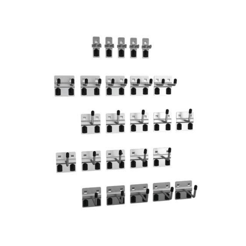 perfo hook kit 25 piece. Steel construction with fast and secure perfolock clip on design. For use with perfo panels. Finish: Zinc plated. WxDxH: 380x140x140mm