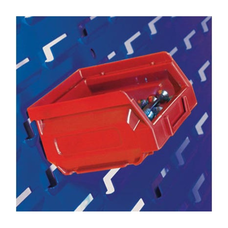 Louvre panel. Flanged steel panel for vertical wall mounting, punched with louvred form for use with hook on plastic bins. Finished in durable powder coat paint in RAL 5010 gentian blue. WxDxH: 457x19x495mm