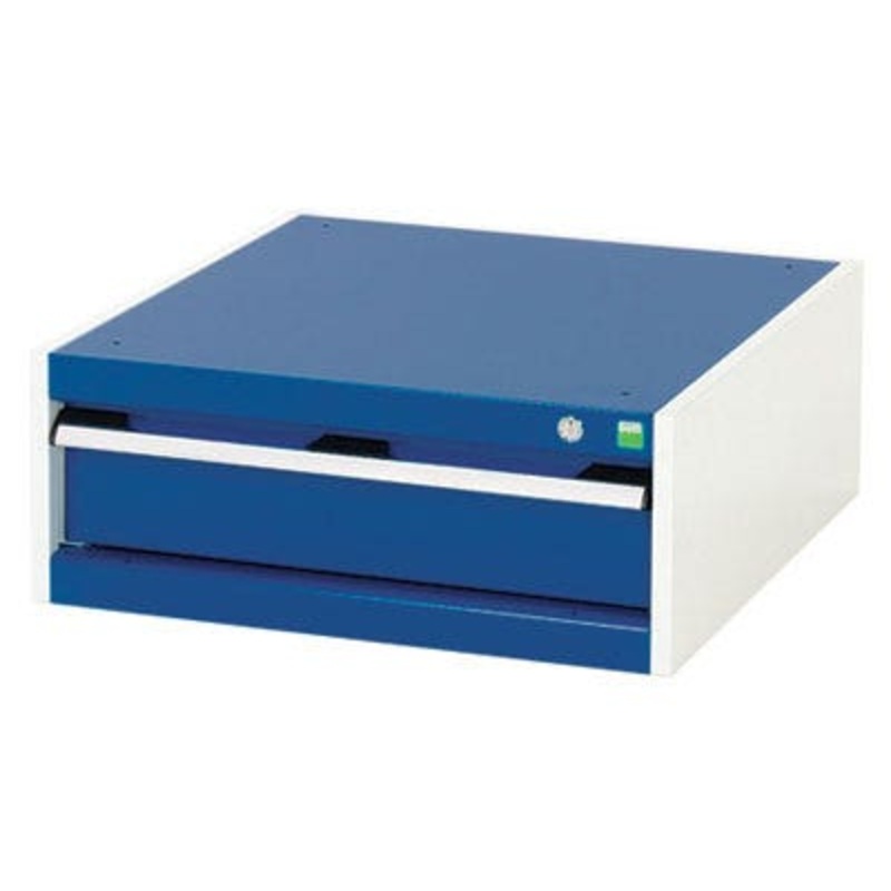 cubio drawer cabinet with 1 drawer. Featuring a heavy duty, reinforced steel housing with up to 1.5 tonne total capacity and 100% extension drawers. Drawer configuration: 1x 150mm (75kg U.D.L.). Finished in durable powder coat paint in RAL 7035 light grey / RAL 5010 gentian blue. WxDxH: 650x750x250mm.
