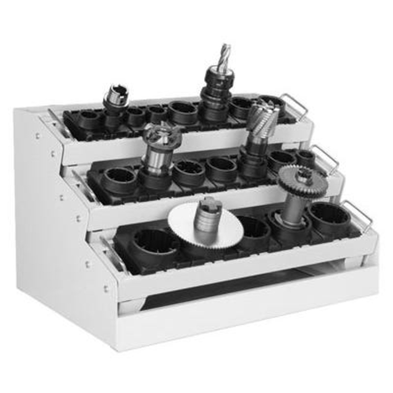 CNC tool carrier bench stand for up to 3 CNC tool carriers. Allows tool carriers to be stored on any worktop,. Finished in durable powder coat paint in RAL 7035 light grey. WxDxH: 600x450x375mm.
