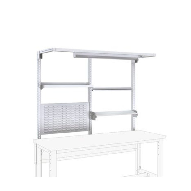 1800mm wide 2 section rear frame with central overhead LED light. Left hand section complete with fixed shelf and louvre panel. Right hand section complete with bin rail and 200mm deep adjustable angle shelf. Brand:Bott Manufacturer Part Number:41010195 Co