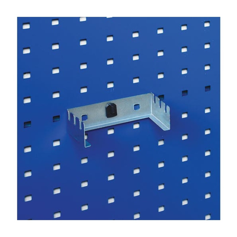 perfo saw holder 3 location. Steel construction with fast and secure perfolock clip on design. For use with perfo panels. Finish: Zinc plated. WxDxH: 125x70x38mm
