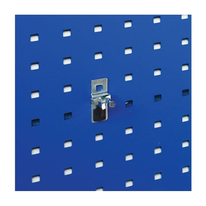 perfo spring clip 25-28mm. Steel construction with fast and secure perfolock clip on design with metal spring clip for holding items. For use with perfo panels. Supplied as a kit of 5. Finish: Zinc plated. WxDxH: 39x50x60mm Brand:Bott