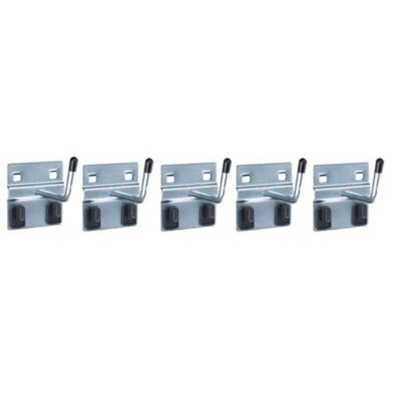 perfo extended hook 75mm long 6mm. Steel construction with fast and secure perfolock clip on design, with safety end cap on prong. For use with perfo panels. Supplied as a kit of 5. Finish: Zinc plated. WxDxH: 60x75x60mm Brand:Bott Manufacturer Part Number
