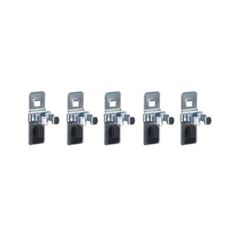 perfo spring clip 36-45mm. Steel construction with fast and secure perfolock clip on design with metal spring clip for holding items. For use with perfo panels. Supplied as a kit of 5. Finish: Zinc plated. WxDxH: 60x64x60mm Brand:Bott Manufacturer Part Num