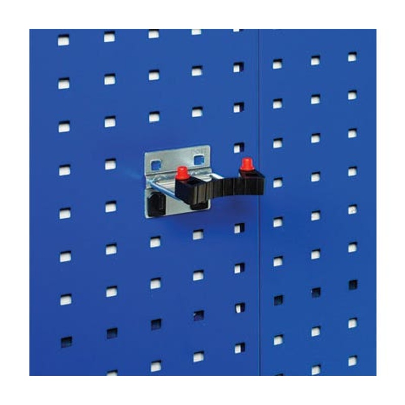 perfo flexible tool clamp 15-25mm with wide backplate, 15-25mm. Steel construction with fast and secure perfolock clip on design with rubber gripper clamp. For use with perfo panels. Finish: Zinc plated / black. WxDxH: 78x86x64mm Brand:Bott Manufacturer Pa