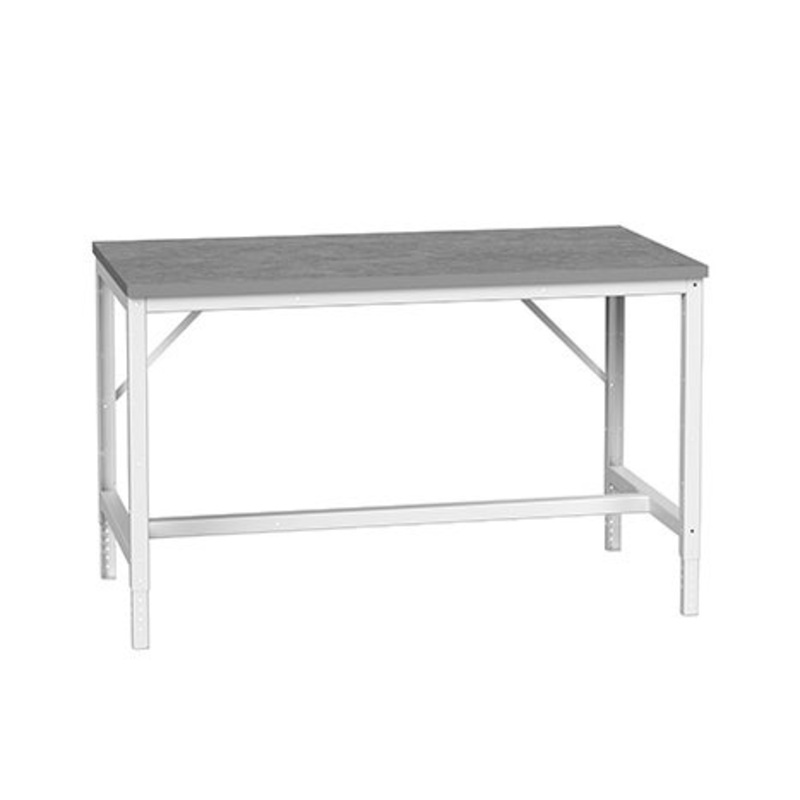 verso height adjustable framework bench 1500mm x 800mm x 780 – 930mm with 30mm Lino worktop. Constructed of sheet steel with a hardwearing light grey (RAL 7035) powder coated finish.