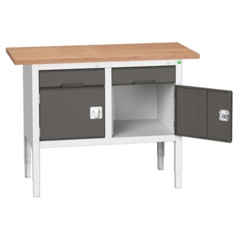 Bott Verso Static Storage Benches with 2 Cabinets, Drawer and Cupboard – 1250 (W) x 600 (D) | MSC Industrial Supply Co.