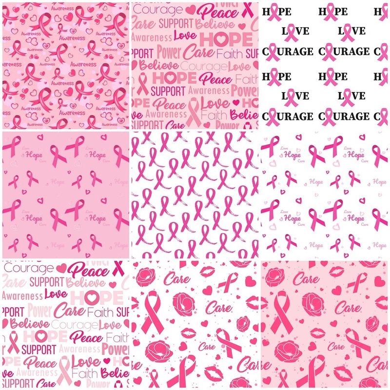 Breast Cancer Awareness Fat Quarter Bundle – 9 Pieces Quilting Cotton