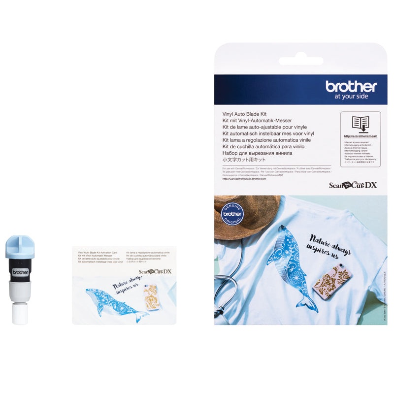 Create detailed vinyl projects with the Brother ScanNCut DX Vinyl Auto Blade Kit, featuring modern and lifestyle designs perfect for seasonal and all-occasion creations. This kit also includes a tiling function that allows you to make extra-large designs by breaking them into separate quadrants, and a weeding function that simplifies large vinyl projects by cutting weeding lines around the design. The kit includes an activation card for 21 designs, along with the weeding box and tiling functions. It is compatible with 12″ x 12″, 12″ x 24″ mats, or the Roll Feeder. For detailed instructions, please refer to the Brother ScanNCut DX Vinyl Auto Blade Kit instruction manual. Designed for use exclusively with Brother ScanNCut DX machines.