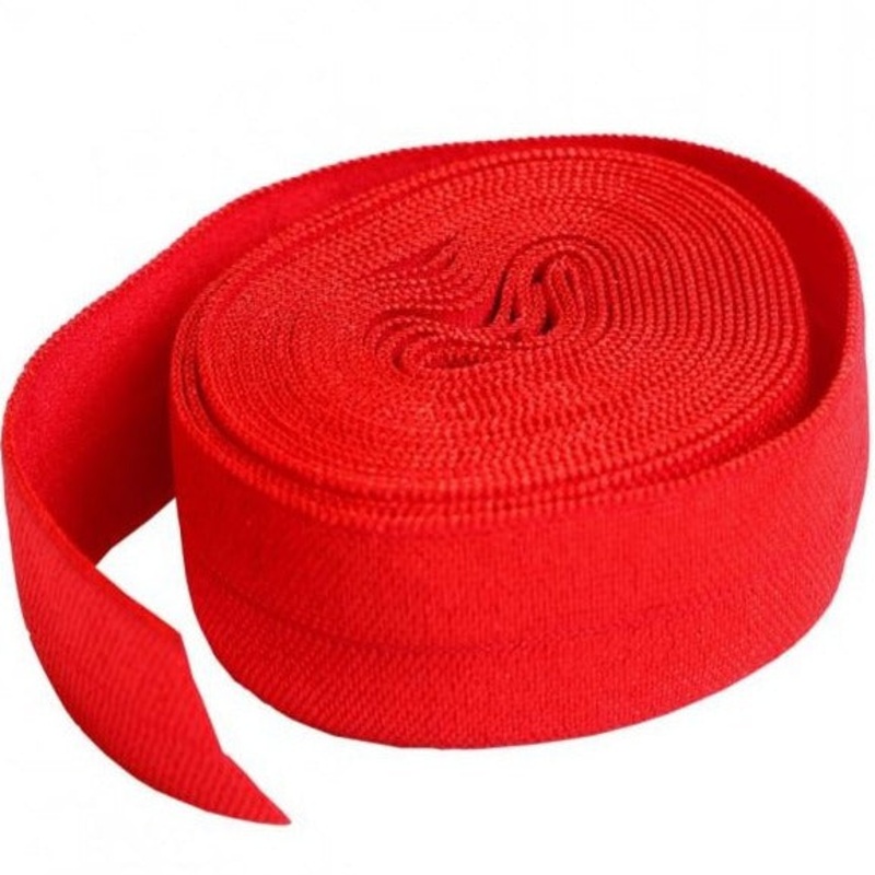 Fold Over Elastic by Annie Unrein - Atom Red20mm or 3/4 inches wide - 2-yards long, nylon.Fold over elastic provides a decorative finish to many decorative apparels and crafts.Use fold over elastic for finishing the edges of mesh fabric for pockets in purs