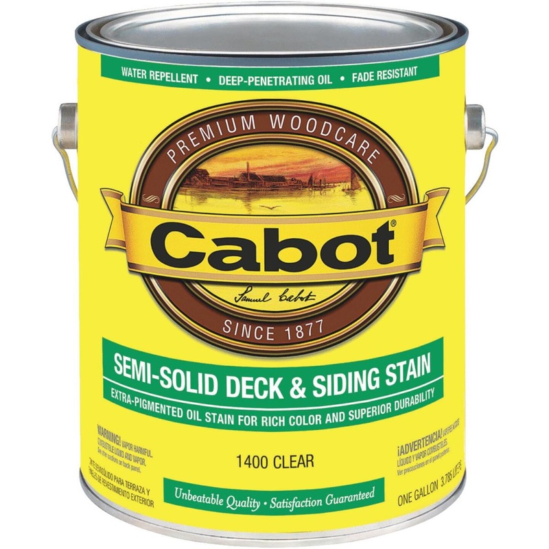 Cabot Semi-Solid deck and siding stains have an alkyd resin base that provides an extremely tough and scuff-resistant finish. Semi-Solid bridges the gap between solid and semi-transparent stains. If a lighter shade is desired, intermix Cabot Semi-Solid clear with other Cabot Semi-Solid deck and siding colors to achieve desired appearance. They are extremely durable stains for use on all types of wood decking, siding, and fencing. Composed of lightly pigmented, deep-penetrating, alkyd resin and refined natural linseed oil. These stains bring out the full beauty of the wood grain and provide deep-penetrating wood protection. They are ideal for use on most types of lumber such as cedar, fir, pine, cypress, spruce, redwood, and weathered pressure-treated wood. These water-repellent stains also resist cracking, peeling, and blistering. For use on decks, siding, fencing, wood patios, wood screening, porches, swimming pool walks, outdoor furniture, steps, and railings. Use on new or previously stained smooth wood surfaces. Dries to a natural, flat finish in approximately 24 to 48 hours, depending on temperature and humidity. Covers approximately 400 to 500 Sq. Ft. per gallon. These rates will vary depending upon the porosity of the surface. Apply 1 even coat with a brush. Do not thin. Clean up with mineral spirits.