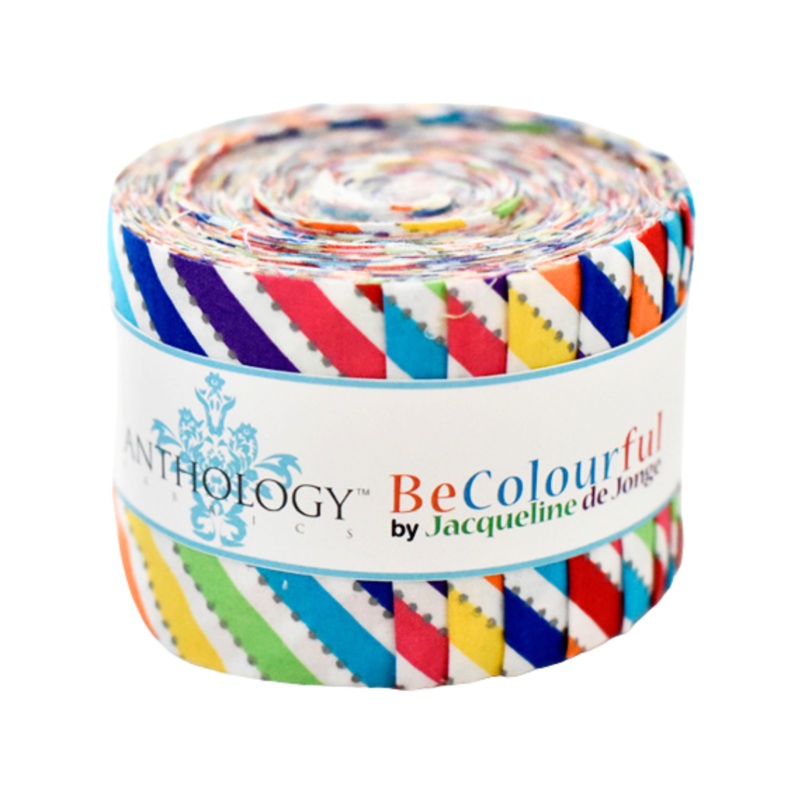 BeColourful offers a variety of Jacqueline de Jonge's print and solid batiks, including her fun stripes in straight or bias and glitter dusted colors.100% Cotton26 Precut 2.5" Strips