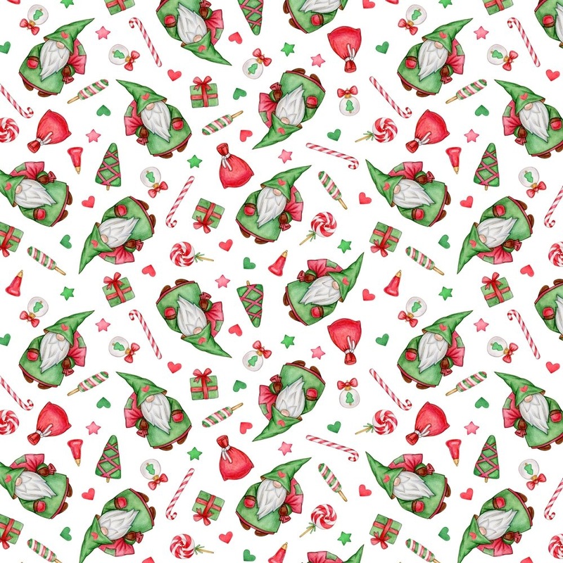 The White Christmas Symbols Gnome Fabric is part of the Snowy Christmas Gnomes Fabric Collection printed by Sew Creative Fabrics. Digitally Printed on 100% cotton.