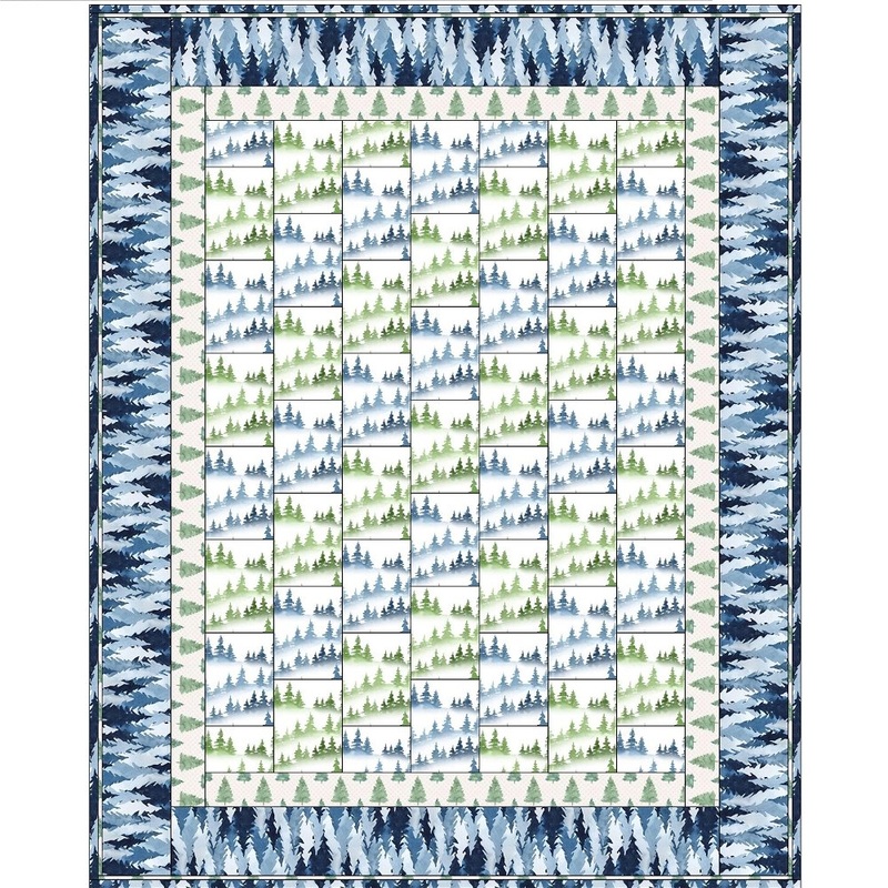The Christmas Tree Lap Quilt Kit includes everything you need to make the quilt – the instructions and a total of 6 yards of fabric for sashing, flange binding, and backing. Batting is sold separately. The finished size of this quilt is 41 1/2″ x 51 1/2″.