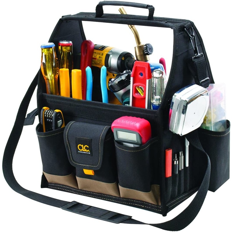 General InformationBrandCLC Work GearPart Number1570Product TypeTOOL BOXPackagingRetailCountry of OriginChinaUPC084298015700California ResidentsProposition 65 WarningPhysical CharacteristicsColorBlackLength12″Width8.5″Height14″Weight2.19 kg4.83 lbDetailsFeatures12 Multi-use outside pockets and 8 inside pockets to organize a wide range of tools and accessories.