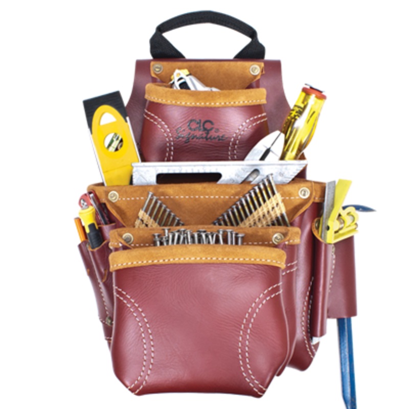 General InformationBrandCLC Work GearPart Number21687Product TypeTool BagPackagingRetailUPC084298216879California ResidentsProposition 65 WarningPhysical CharacteristicsColorMaroonMaterialLeatherWeight1.44 kg3.17 lbDetailsFeaturesEasy carry handle design for easy adjustments, easy storage and the ideal way to carry bag without spilling contents.