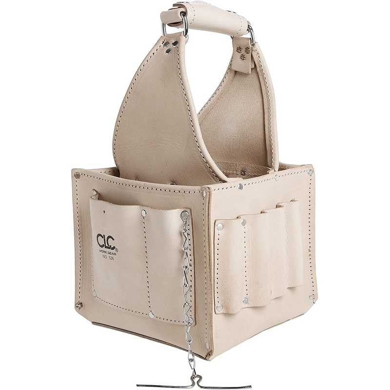 General InformationBrandCLC Work GearPart Number526Product TypeTool PouchPackagingRetailCountry of OriginChinaUPC084298005268California ResidentsProposition 65 WarningPhysical CharacteristicsColorTanMaterialLeatherLength8Width8Height15″Weight1.36 kg3.00 lbDetailsFeaturesTop grain leather construction.